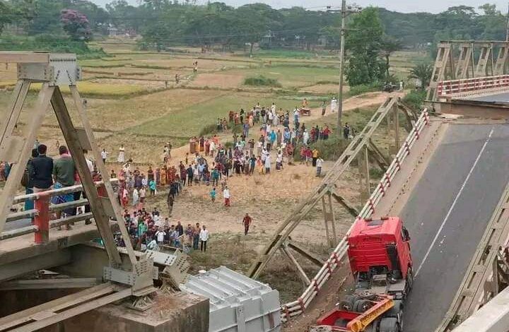 ত্রিশালে লোহার সেতু ভেঙে প্রাইভেটকার-লরি নদীতে