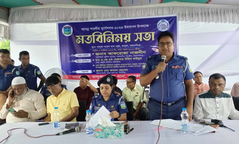 ভালুকায় আসন্ন শারদীয় দুর্গোৎসব উদযাপন উপলক্ষে মতবিনিময় সভা অনুষ্ঠিত