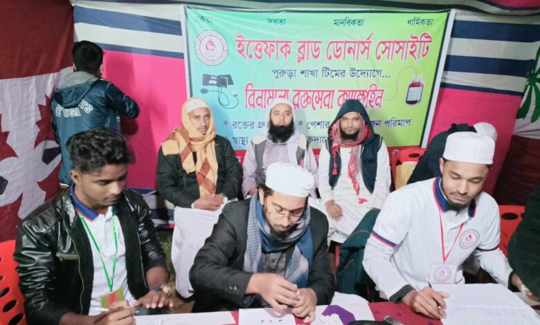 পুরুড়া শাখা টিম লিডার মাওলানা শামীম আহমদের সভাপতিত্বে ও মাদরাসার মোহতামিম হাফেজ নজরুল ইসলামের মোনাজাতের মাধ্যমে বিনামূল্যে রক্তসেবা ক্যাম্পেইন শুরু হয় বিকাল নাগাদ, শেষ হয় রাত প্রায় দশটার দিকে। উক্ত ক্যাম্পেইনে প্রায় ৩০০ জন ব্যক্তি বিনামূল্যে এই সেবা গ্রহণ করেন।