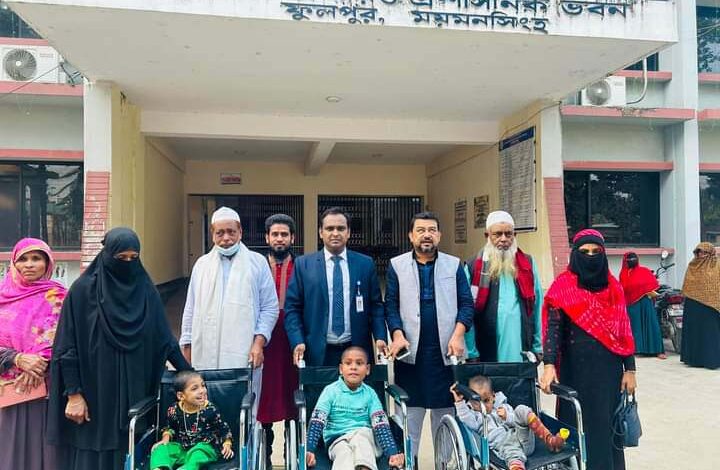 ফুলপুরে ৩ জন প্রতিবন্ধী শিশুকে হুইল চেয়ার প্রদান