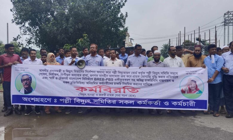 ভালুকায় পল্লী বিদ্যুৎ সমিতি কর্মকর্তা-কর্মচারীদের কর্মবিরতি পালন