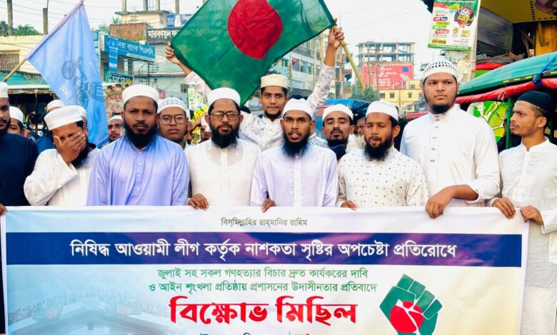 জুলাইসহ সকল গণহত্যার দ্রুত বিচার দাবিতে ভালুকায় খেলাফত ছাত্র মজলিসের বিক্ষোভ