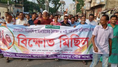 ফরিদপুর পৌর আওয়ামী লীগের উদ্যোগ বিক্ষোভ মিছিল সমাবেশ অনুষ্ঠিত